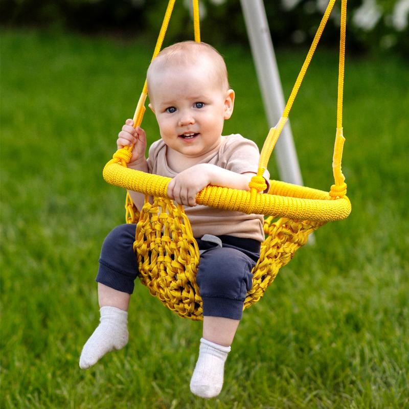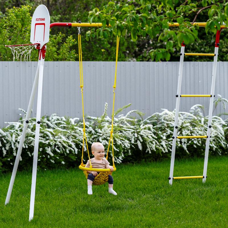Удобные плетеные детские качели, специально разработанные для установки на комплексы ROMANA, предлагают комфорт и безопасность для малышей. Их мягкий корпус адаптирован к анатомии ребенка, обеспечивая идеальную посадку и поддержку. Бортики качелей создают безопасную среду для игры, предотвращая возможные падения. Прочные и износостойкие материалы гарантируют долговечность и надежность эксплуатации. Крепкие шнуры надежно фиксируют качели к опоре и обладают высокой стойкостью к истиранию.