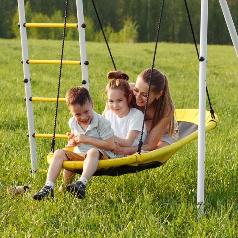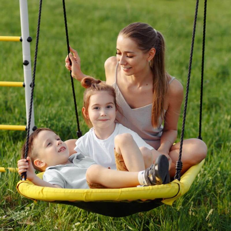 Качели Лодка выдерживают существенную нагрузку до 100 кг. Предназначены для детей в возрасте от 3-х лет и старше.