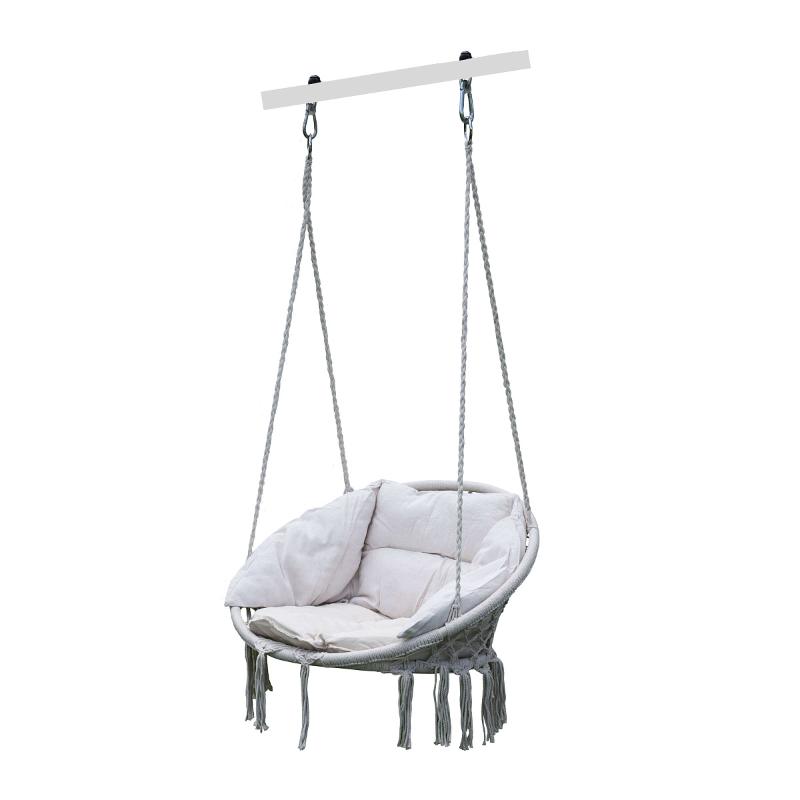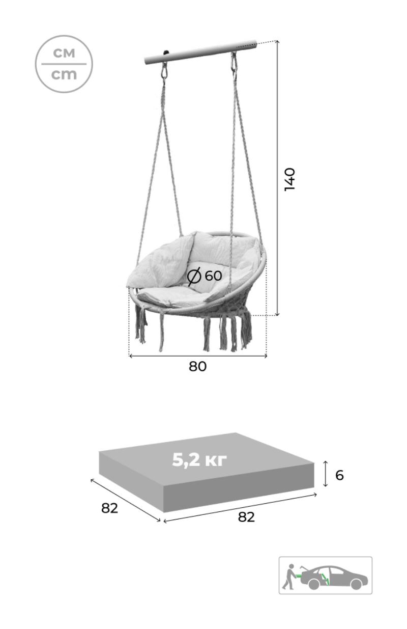 У нас вы найдете исчерпывающий потребности комплект, включающий в себя прочный каркас и высокопрочную веревочную сетку, обеспечивающие надежную поддержку. Этот комплект также включает в себя уютное сиденье со спинкой и подушкой изготовленной исключительно из 100% хлопка. Такая комплектация не только гарантирует простоту монтажа, но и приносит невероятное удовольствие от использования.