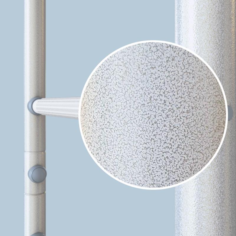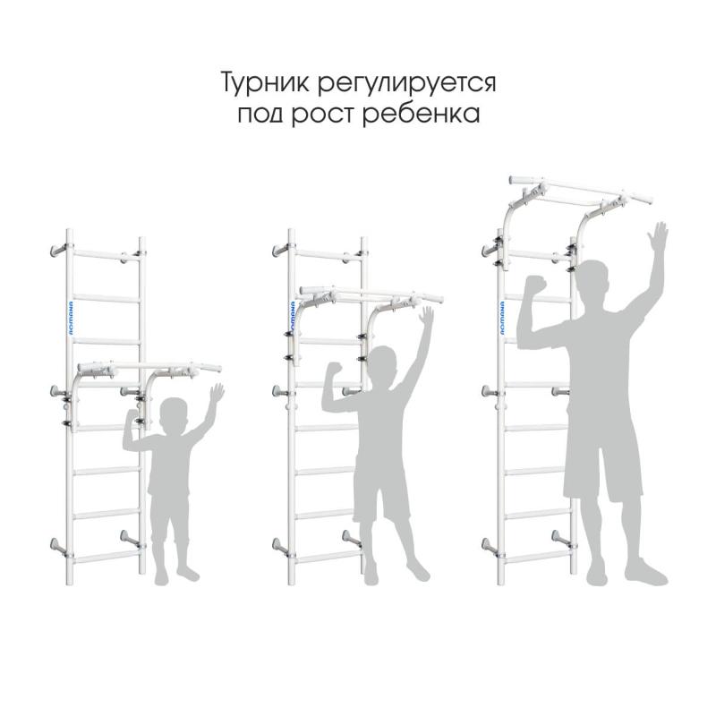Наличие подвижных хомутов позволяет крепить конструкцию стандартно, или углом. Массажные ступени комплекса выступают профилактикой развития плоскостопия.