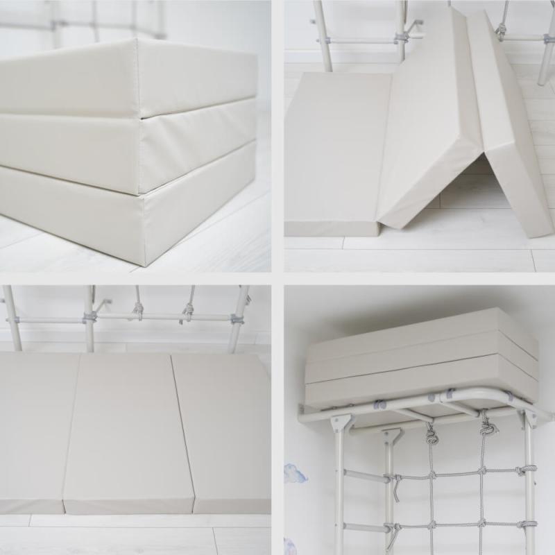 Размеры изделия: 1000*1500*100 в разложенном виде. В сложенном виде мат занимает немного места, его габариты составляют 1000*500*300мм. Мягкий щит оптимально подойдет для комплектации шведских стенок с канатным лазом, скалолазом или с навесным оборудованием (кольцами, лестницами). Помимо этого, габариты изделия позволяют организовать спортивное пространство для активного досуга. В ассортименте представлено множество вариантов расцветок. Однотонные маты в пастельных оттенках серого и бежевого цвета мягко впишутся в интерьер. Эффектные двусторонние маты станут ярким акцентом в дизайне комнаты, а красочные сочетания цветов не оставят равнодушными ни взрослых, ни детей. Двусторонние маты имеют разную расцветку для двух сторон изделия. Одним движением можно изменить цвет мягкого щита, просто перевернув его на другую сторону.