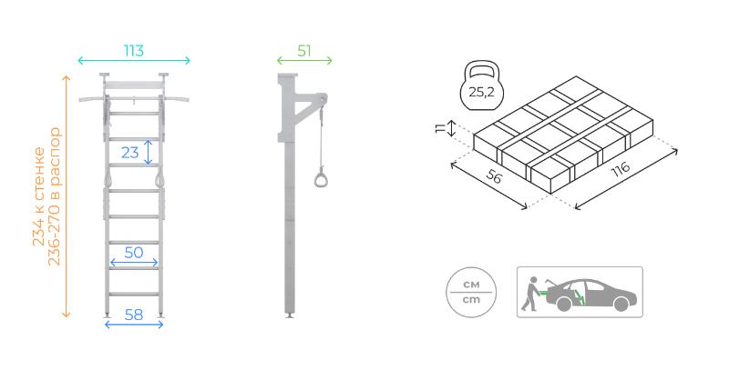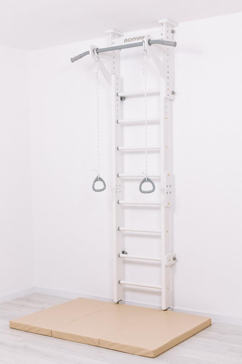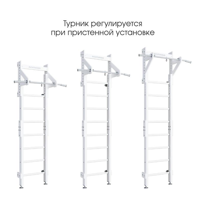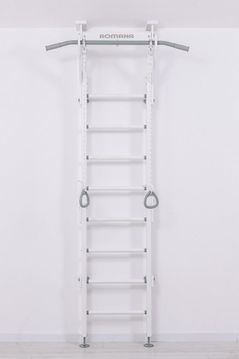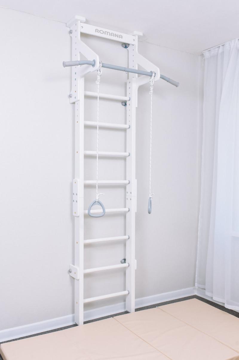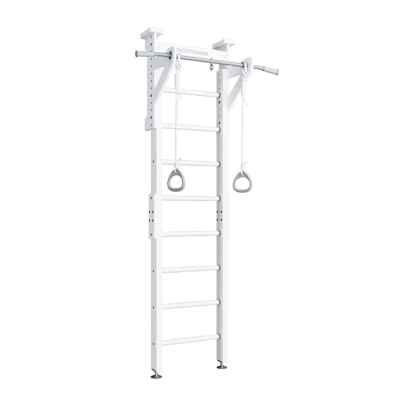 Спортивный комплекс для дома ROMANA Eco1.1 выступает модернизированной версией Eco 1. Он крепится двумя способами (классический вариант и враспор). Устанавливается на любую стенку (кроме гипсокартона). Имеет компактные габариты 510х1110х2355 мм. Допустимая масса пользователя – 100 кг, нагрузка на навесное оборудование – до 50 кг.