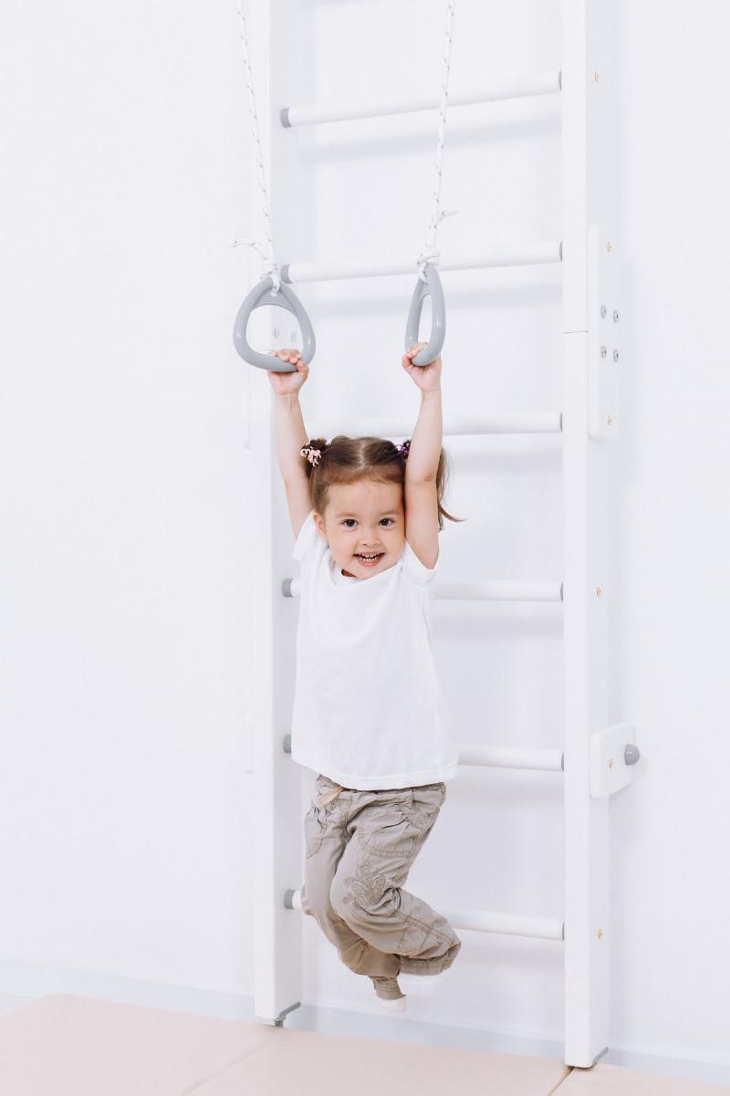 Конструкция изготовлена из хвойной древесины, что гарантирует ее высокие эксплуатационные характеристики. Ступеньки – деревянные. Стенка устанавливается в любом удобном месте, без ограничений. Комплекс дополнен турником с регулировкой, а также канатом и брусьями.