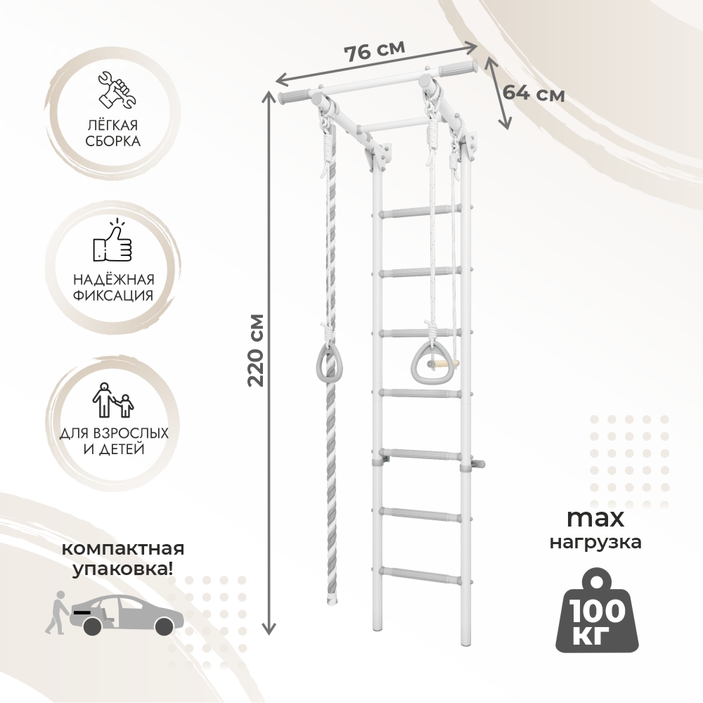 Шведская стенка с турником - это универсальный домашний спортивный комплекс, который не занимает много места и является хорошим тренажером для тренировки основных групп мышц рук, ног, спины и пресса, упражнения на растяжку, Шведская стенка с турником будет полезна всем членам семьи, детям и взрослым.