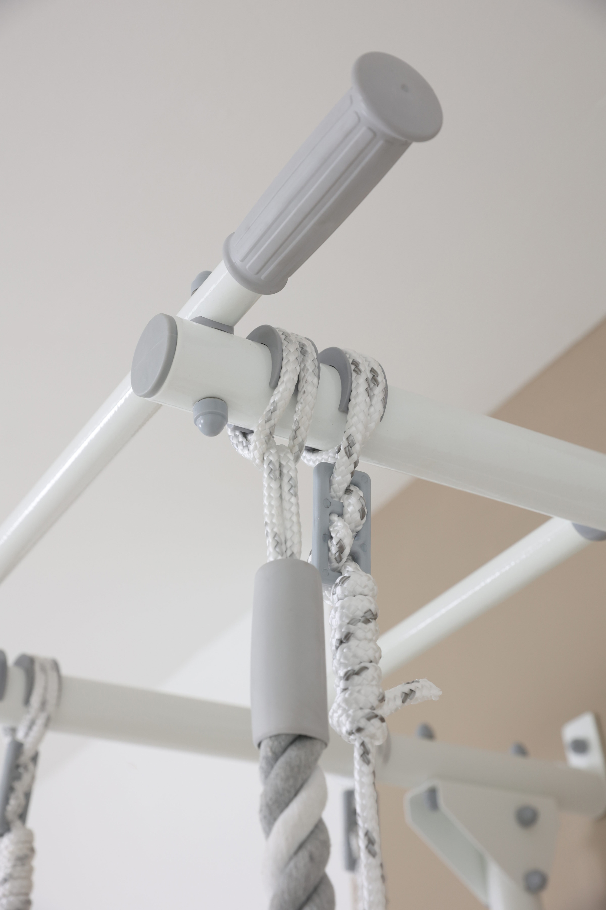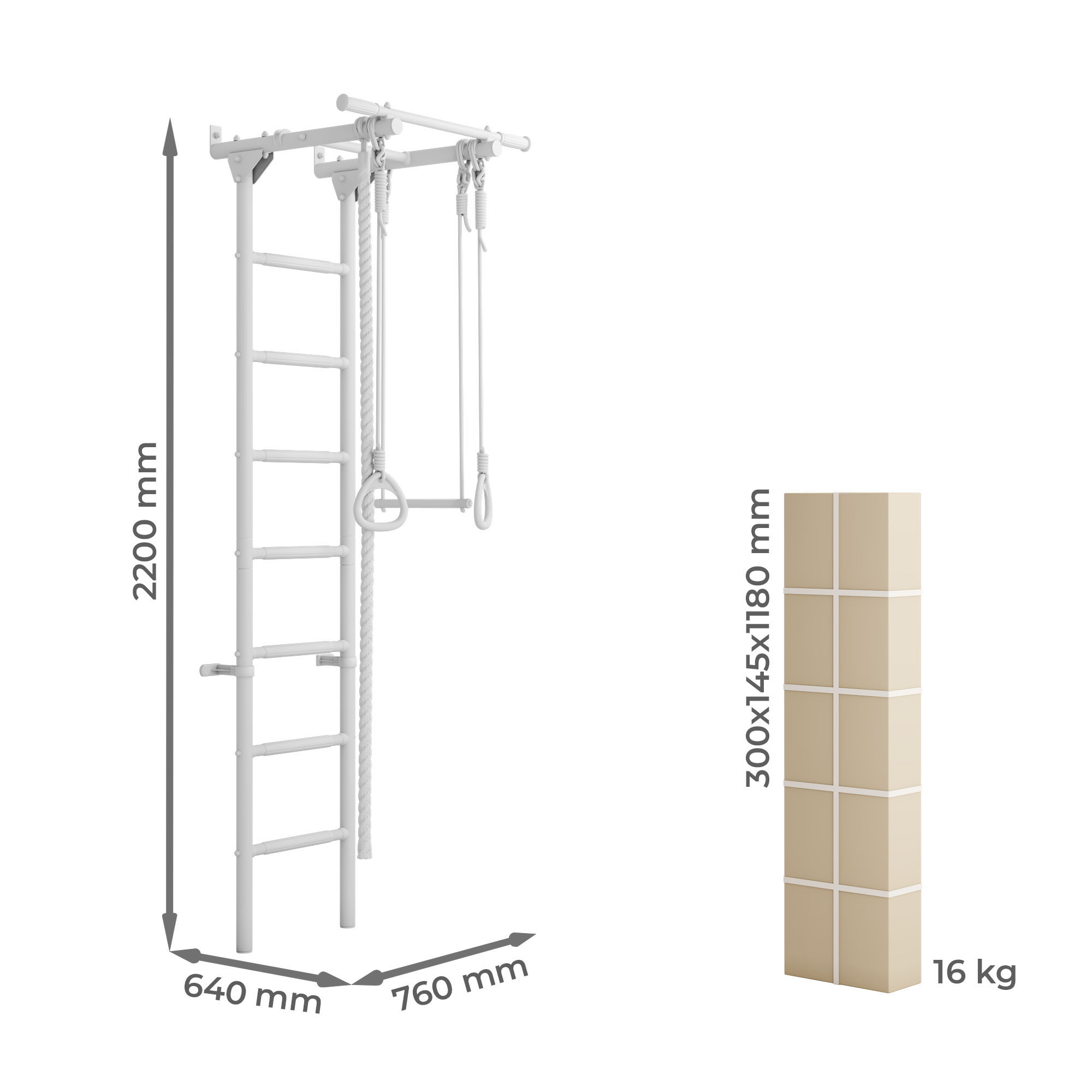 Ступени шведской стенки покрыты мягким рельефным пластиком для массажного эффекта и предотвращения соскальзывания рук и ног. Ступени с пластиковым покрытием всегда остаются комнатной температуры и тактильно приятны. Массажный эффект ступеней способствует профилактике и исправлению плоскостопия у детей.