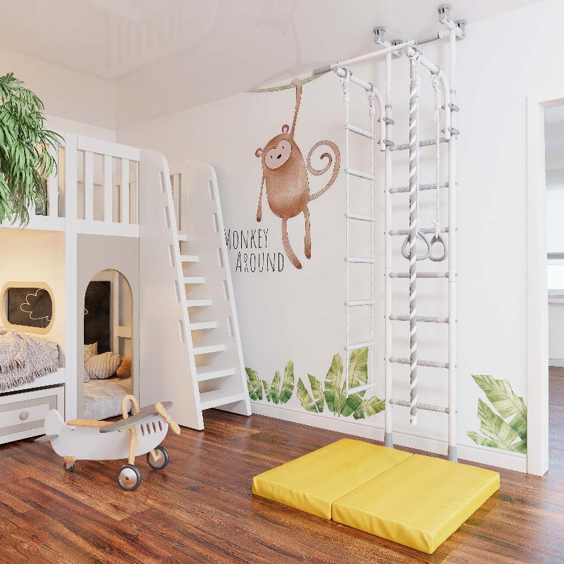 Шведская стенка оснащена навесным оборудованием: веревочной лестницей, канатом и гимнастическими кольцами, которые не прокручиваются, обеспечивая комфорт и безопасность занятий. Массажные ступени из мягкого пластика предотвращают скольжение, всегда теплые на ощупь и помогают в профилактике плоскостопия у детей. Это идеальный тренажер для укрепления мышц рук, ног, спины и пресса, а также для развития силы, выносливости и гибкости.