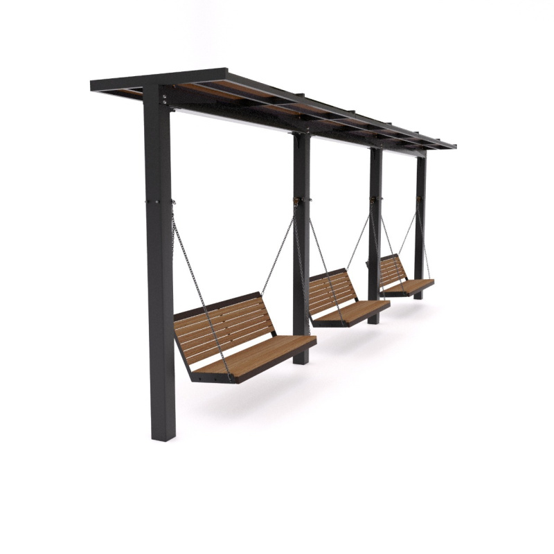 Парковые качели "Бастион" (темное дерево T8017+черный металл) (бетонирование)