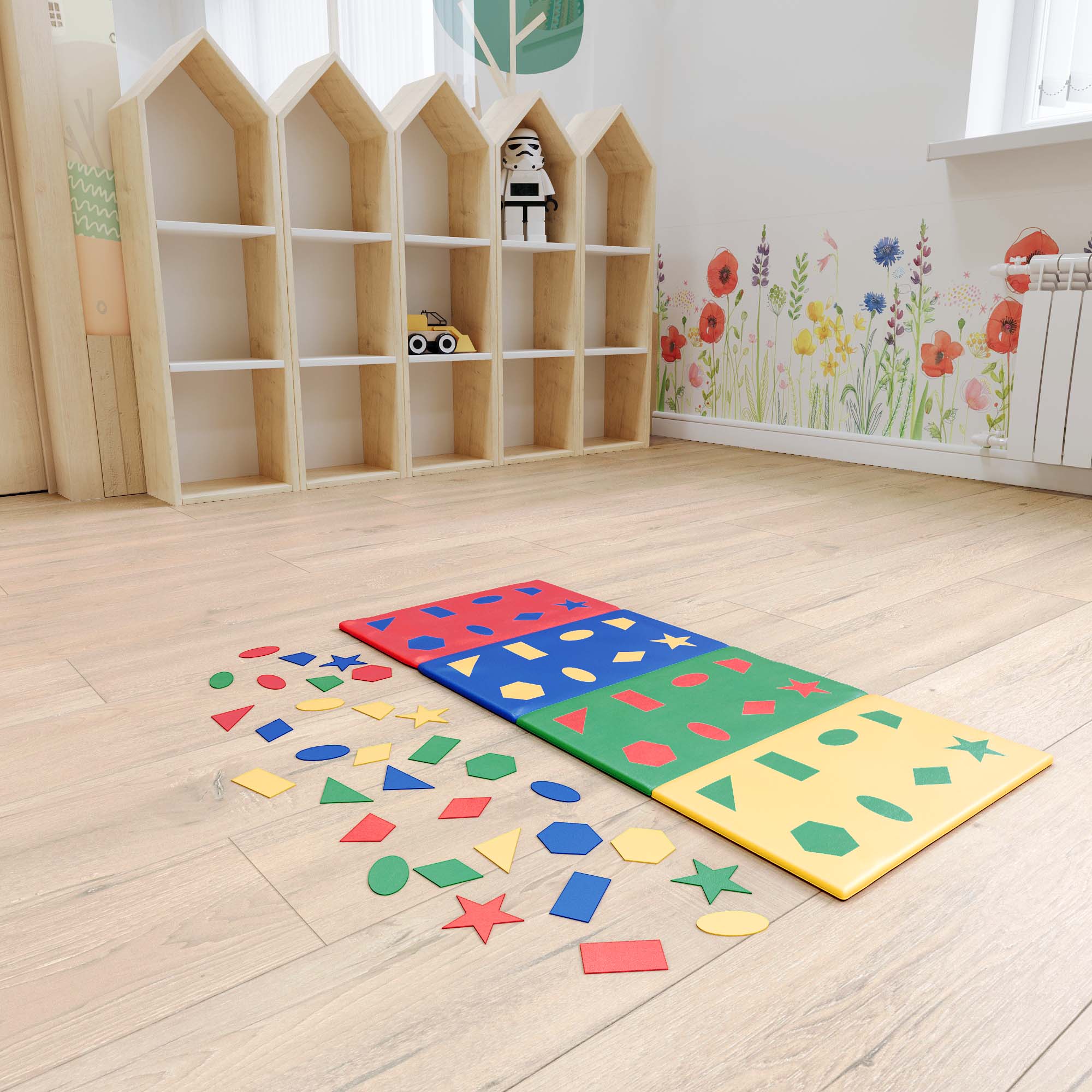 Коврик "Найди фигуру" научит детей различать и сравнивать фигуры по форме, подбирать нужную фигуру из нескольких путём наложения, сформирует внимание, сосредоточенность. Габаритные размеры: 800 х 350 мм. Допустимая нагрузка 50 кг. Вес с упаковкой 2,5 кг