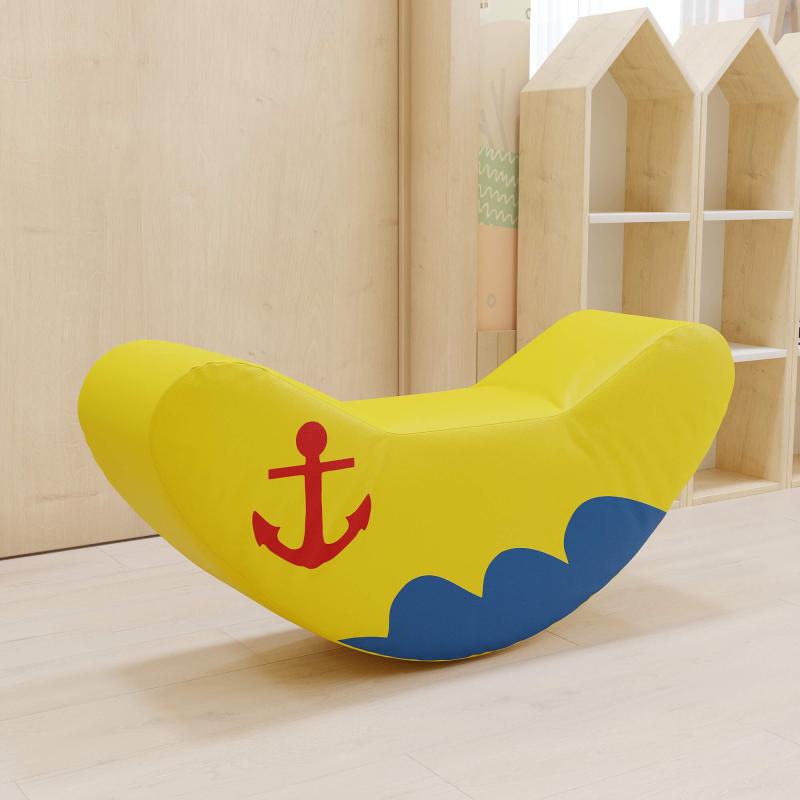 Контурная игрушка «Волна-качалка» - мягкая игрушка в виде дуги с морским рисунком. Рекомендуются для тренировки вестибулярного аппарата. В процессе игры ребенок укрепляет мышцы ног и спины. Может быть использована как дополнение к наборам из мягких модулей. Подходят для детских игровых комнат в общественных местах, дошкольных и младших школьных учреждениях, а так же можно использовать дома и на даче. Возможна игра одновременно двоим детям. Габаритные размеры 980 х 250 х 450. Вес с упаковкой 3 кг.