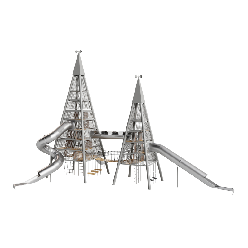 Изделие представляет собой сборную конструкцию из стоек и перекладин, к которым крепятся защитные ограждения и игровые элементы: горки, переходы, лестницы и канатные лазы. Каркас - сталь конструкционная, покрытие - цинкосодержащий грунт, окраска полимерным порошком (RAL по согласованию). Пол - лиственница (массив), покрытие - антисептик, масло террасное атмосферостойкое для древесины. Горки, скаты - сталь нержавеющая толщиной не менее 2 мм. Канатные сети, лазы - канат армированный 16 мм.