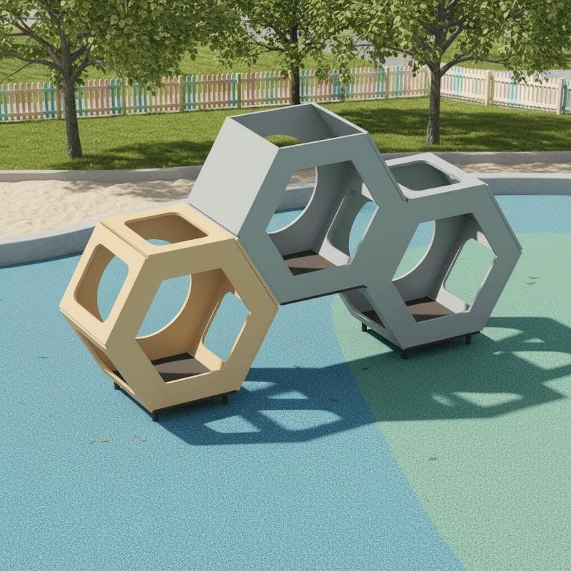 В сборе представляет собой конструкцию в виде секций из трех шестигранных игровых элементов (различных исполнений) в сборе.