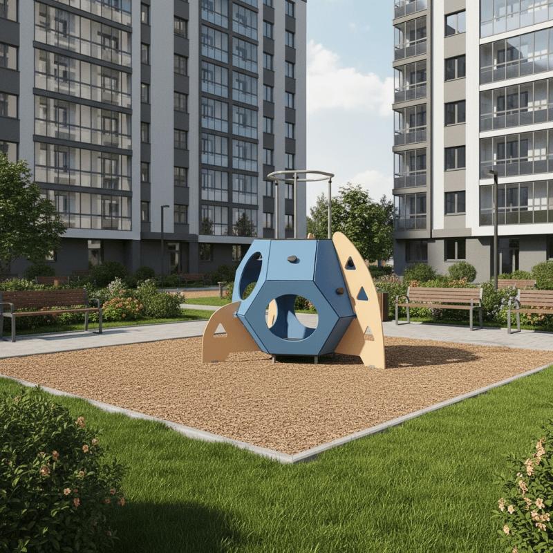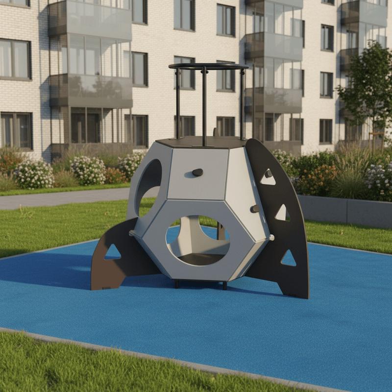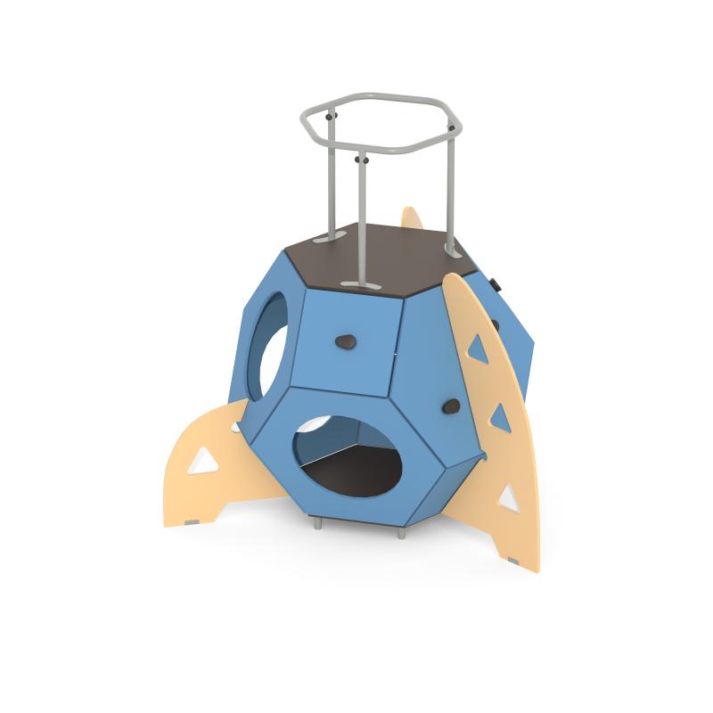 Игровой модуль для тематических игр и физического развития предназначен для детей в возрасте от 8 до 12 лет. Изделие должно представлять собой устойчивую конструкцию, обеспечивающую безопасные условия для занятий на открытом воздухе. Конструкция должна обладать высокой ударопрочностью и виброустойчивостью.В сборе представляет собой конструкцию в виде игрового элемента в виде «усеченного октаэдра», установленного на грунтозацепы.