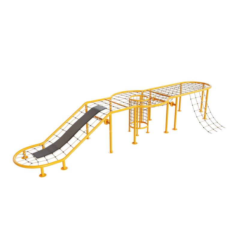 Каркас - сталь конструкционная, покрытие - цинкосодержащий грунт, окраска полимерным порошком (RAL по согласованию). Канат армированный 16 мм (RAL по согласованию). Вставка на канатный лаз выполнена из армированной резины толщиной не менее 10 мм.