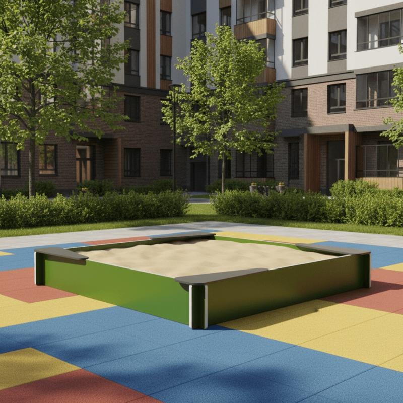 Сборно-разборная песочница предназначена для организации детского досуга на свежем воздухе. Она изготовлена из фанеры и металлических элементов, которые обеспечивают долговечность и надежность изделия в эксплуатации. Конструкция состоит из бортиков. Они ограничивают игровое пространство. По углам песочницы расположены удобные сиденья, позволяющие детям комфортно играть и отдыхать. Металлические детали обработаны полимерной порошковой эмалью для защиты от неблагоприятных климатических условий. Фанерные элементы окрашены специальной краской на основе акрилата и покрыты лаком. Благодаря этому песочница имеет прочную и износостойкую поверхность. Все крепежные элементы оцинкованы для дополнительной защиты от коррозии. Выступающие детали надежно закрыты декоративными заглушками из полиэтилена. Установка песочницы осуществляется путем бетонирования стоек, грунтозацепов или анкеров. Монтаж гарантирует устойчивость и безопасность для детей.